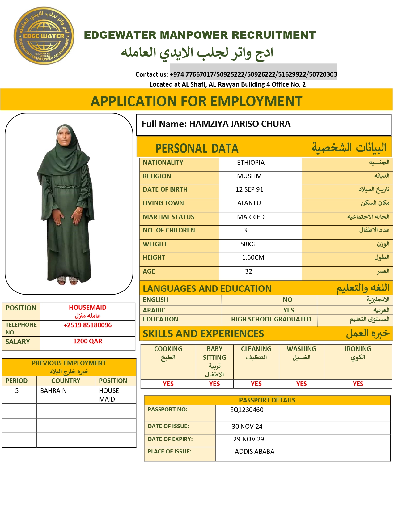 الاسم - عربي HAMZIYA JARISO CHURA