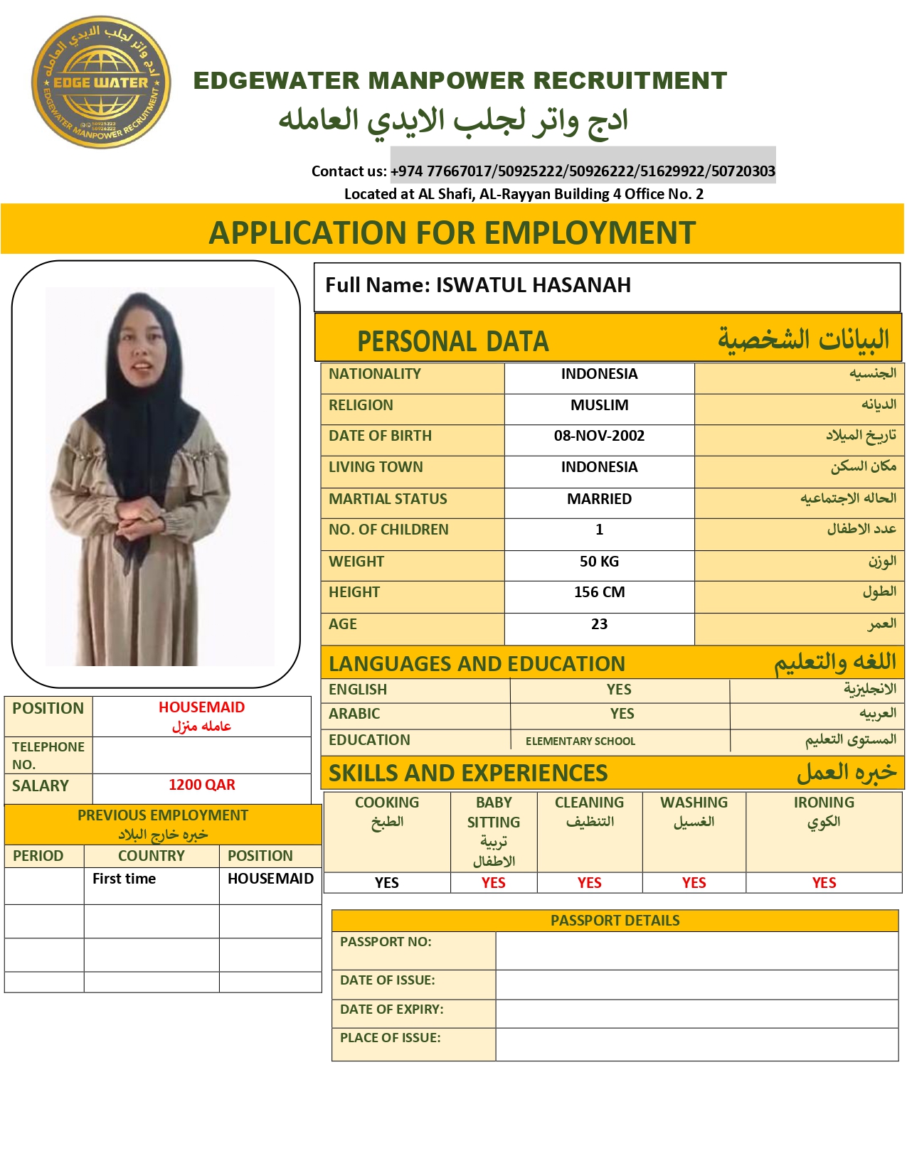 الاسم - عربي ISWATUL HASANAH
