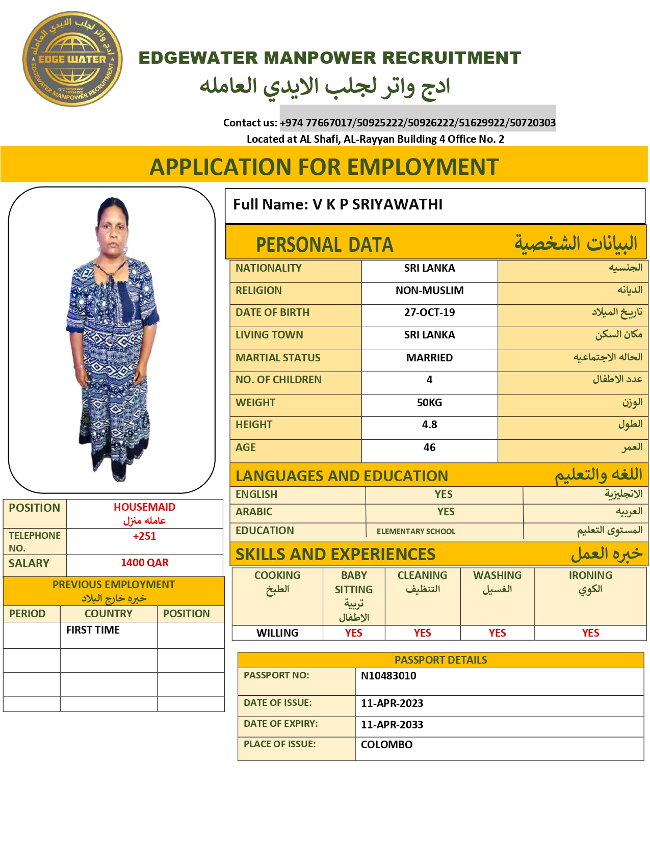الاسم - عربي V K SRIYAWATHI