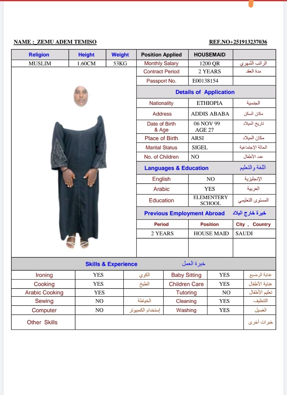 المهنة عاملة منزلية