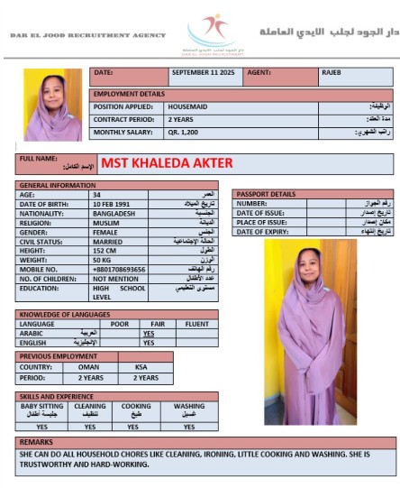 الاسم - عربي MST KHALEDA AKTER