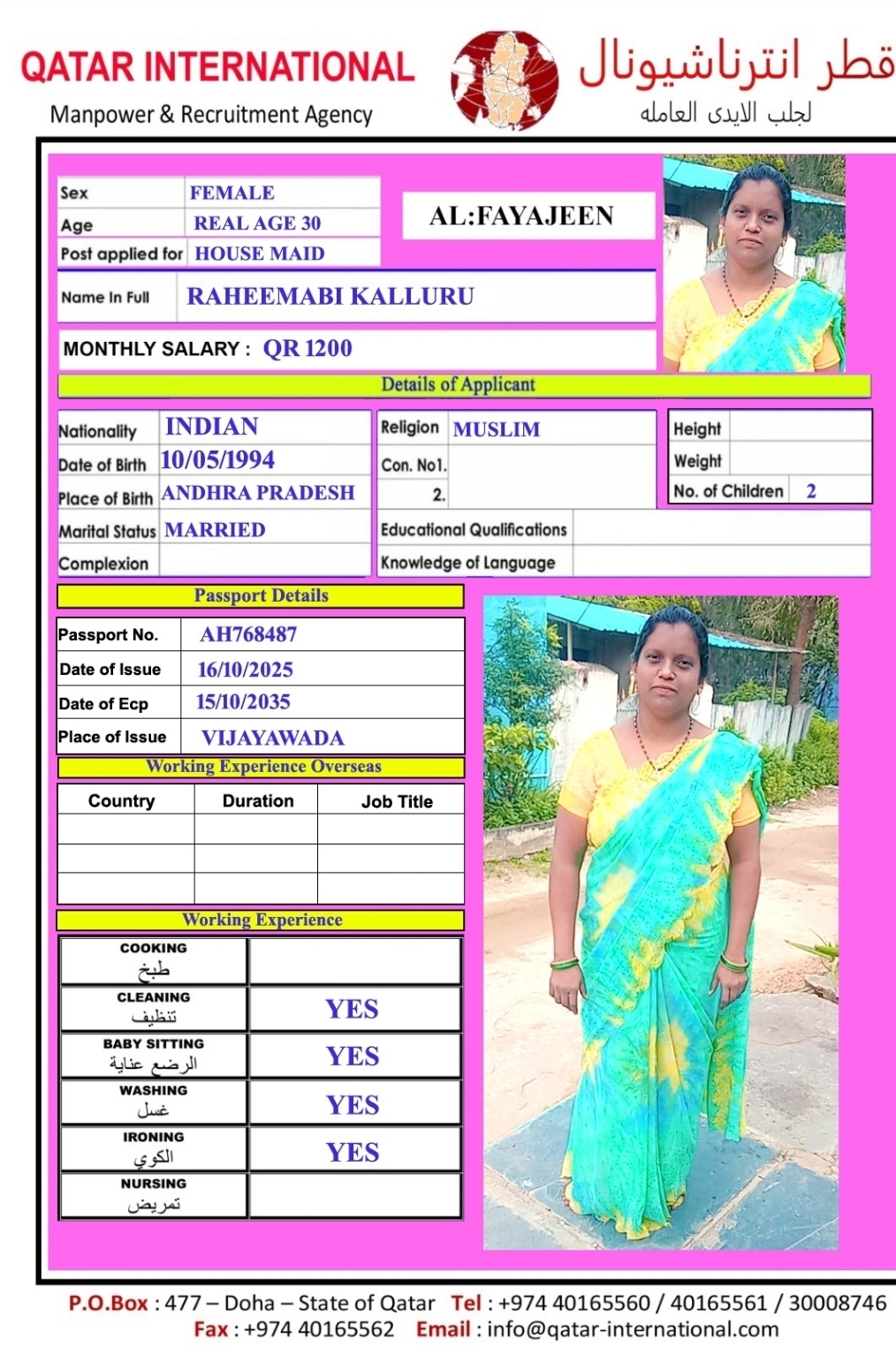 الاسم - عربي RAHEEMABI KALLURU,/