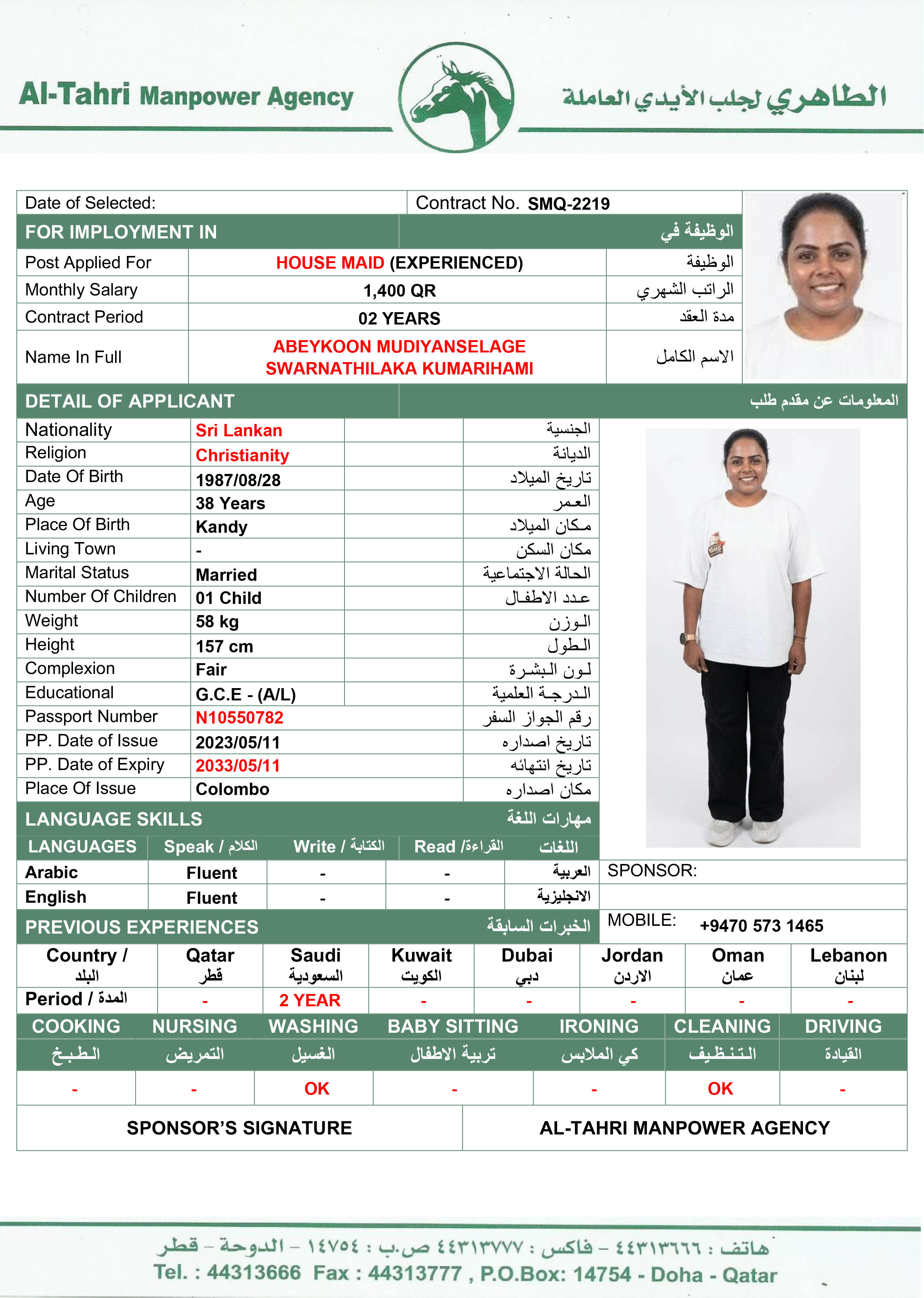 الاسم - عربي سوارناثيلاكا كوماريهامي