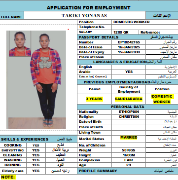 الاسم - عربي TARIKI YOHANIS