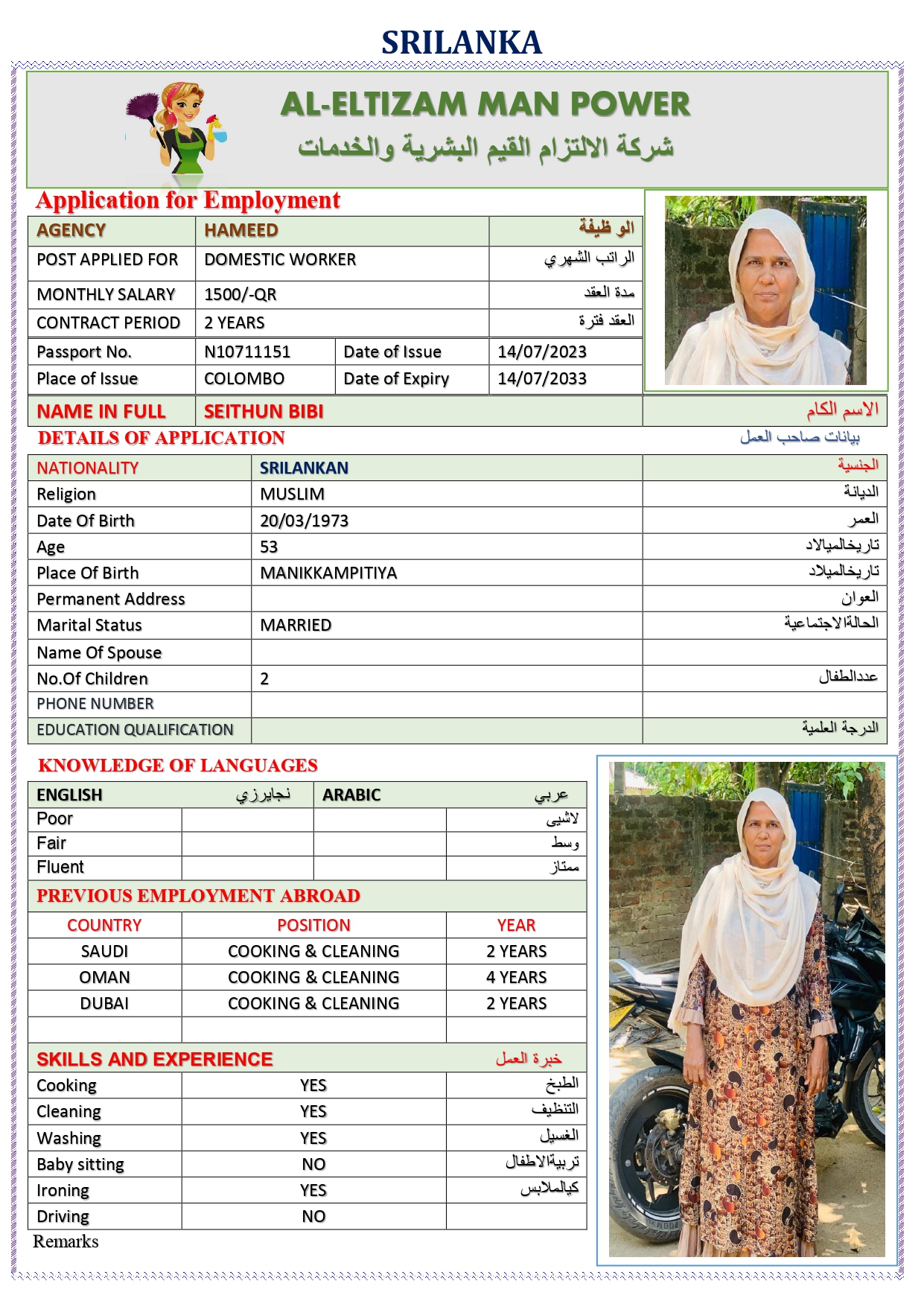الجنسية سريلانكا