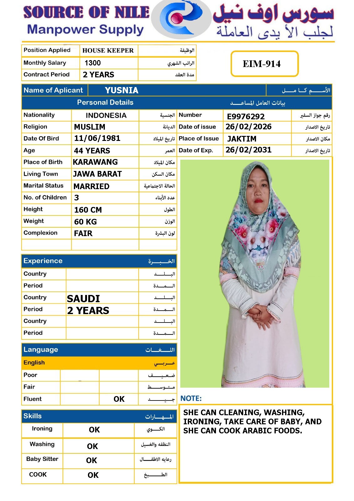 الاسم - عربي YUSNIA INDONESIA 2 WEEKS TO COME