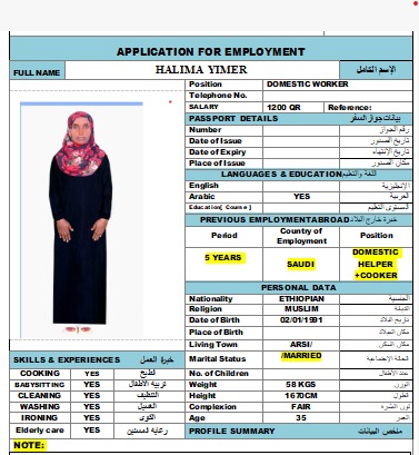 المهنة عاملة منزلية