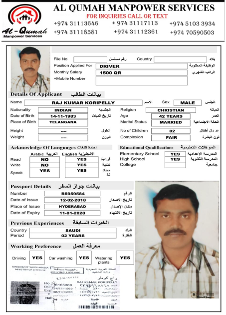 الاسم - عربي RAJ KUMAR KOREPELLY
