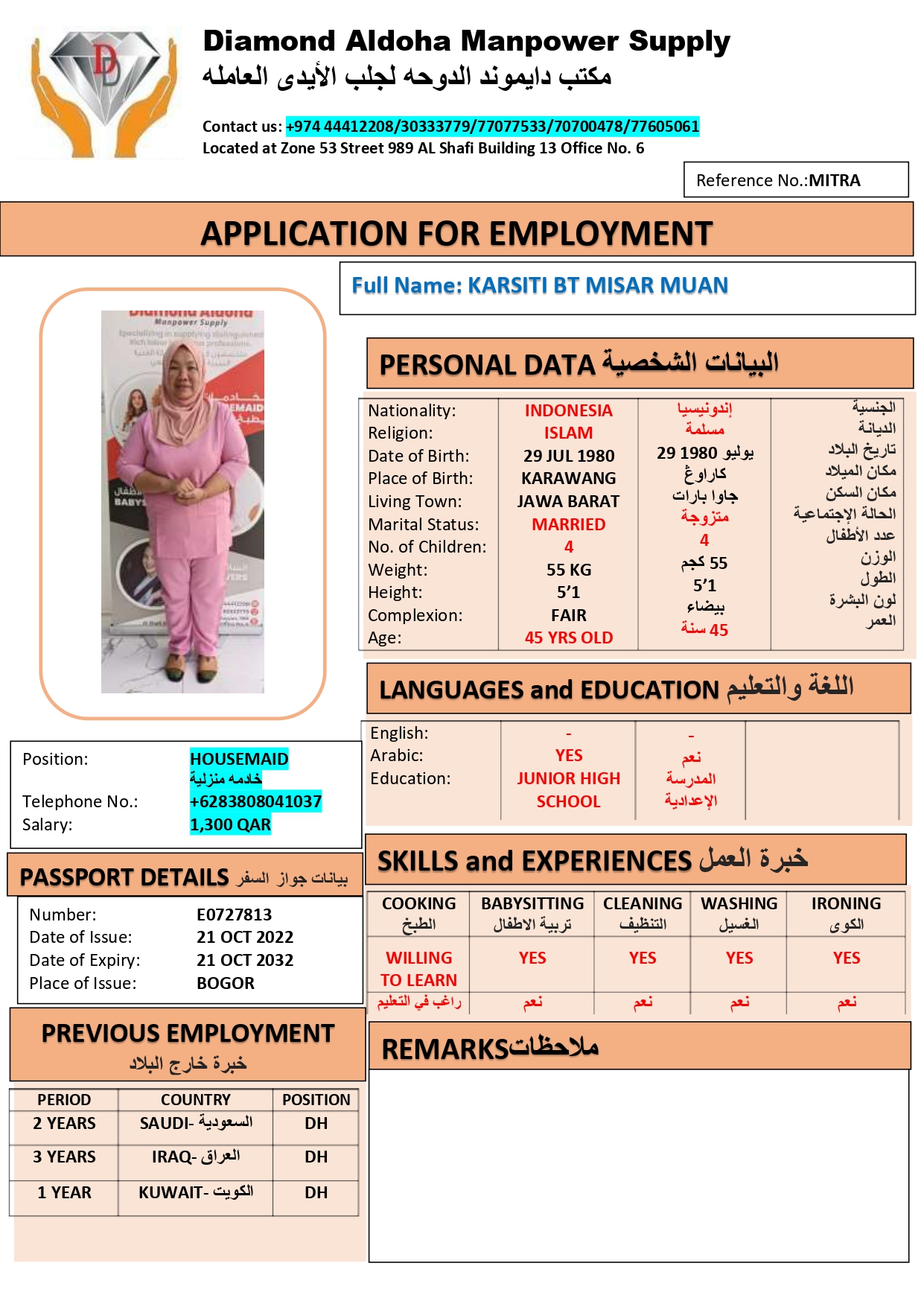 الاسم - عربي KARSITI BT MISAR MUAN