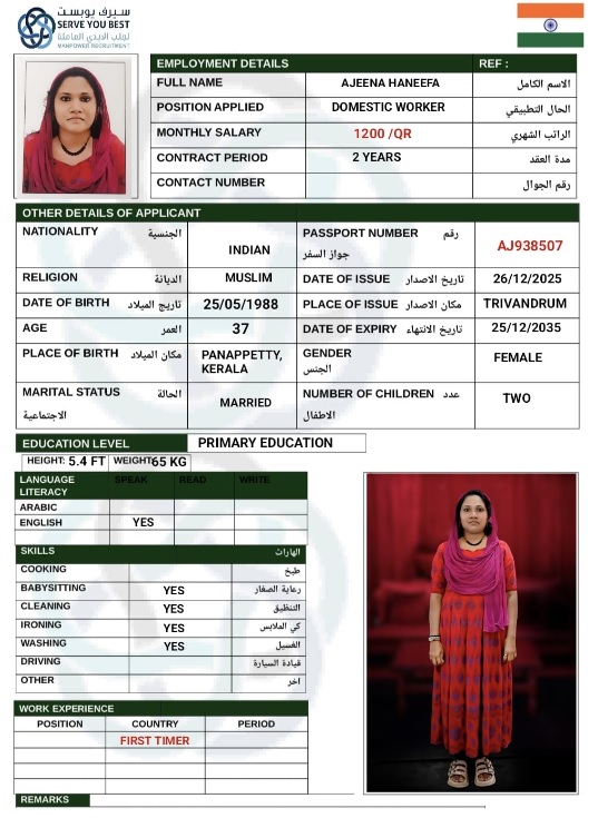 الاسم - عربي A.JEENA HANEEFA