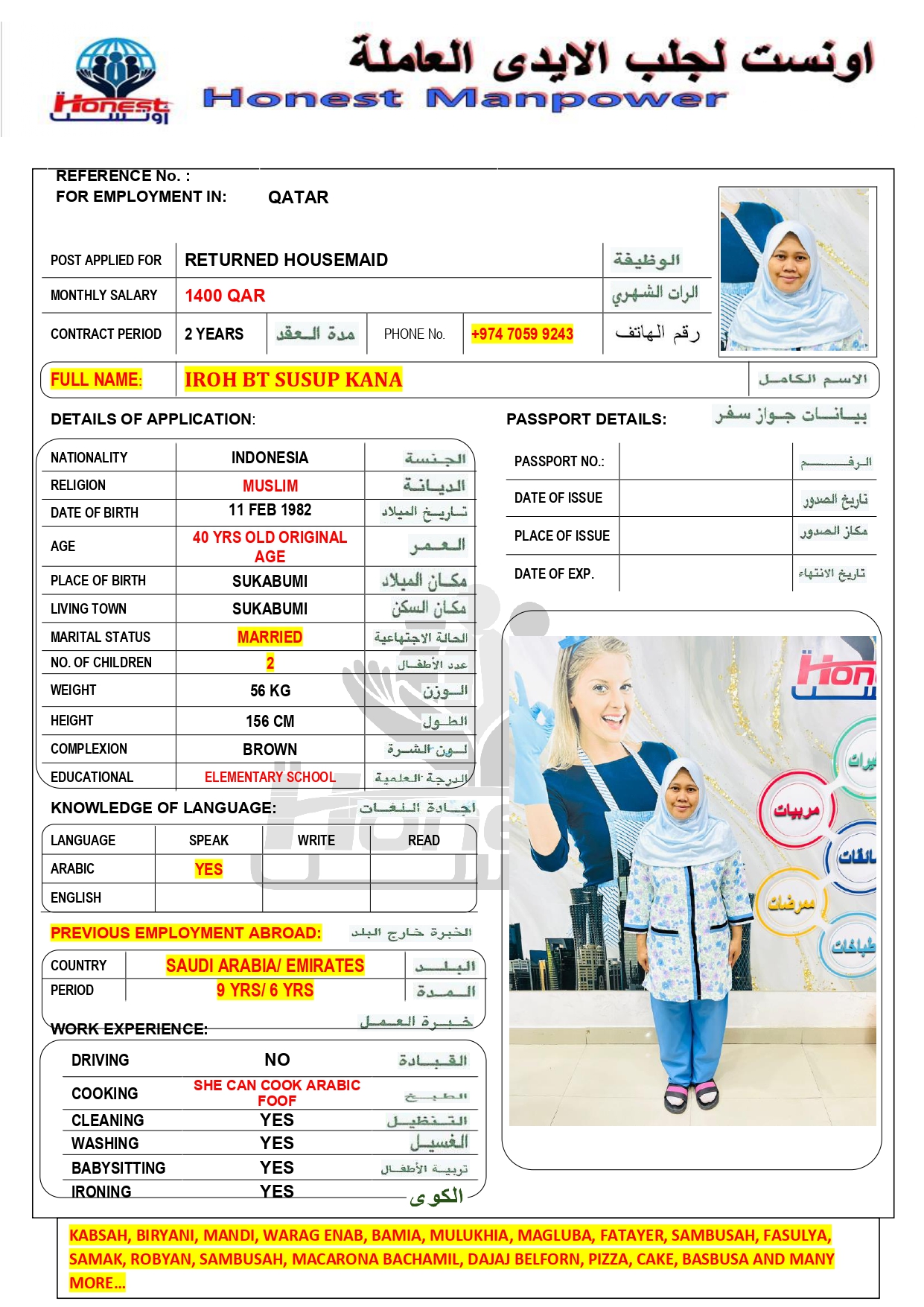 المهنة عاملة منزلية