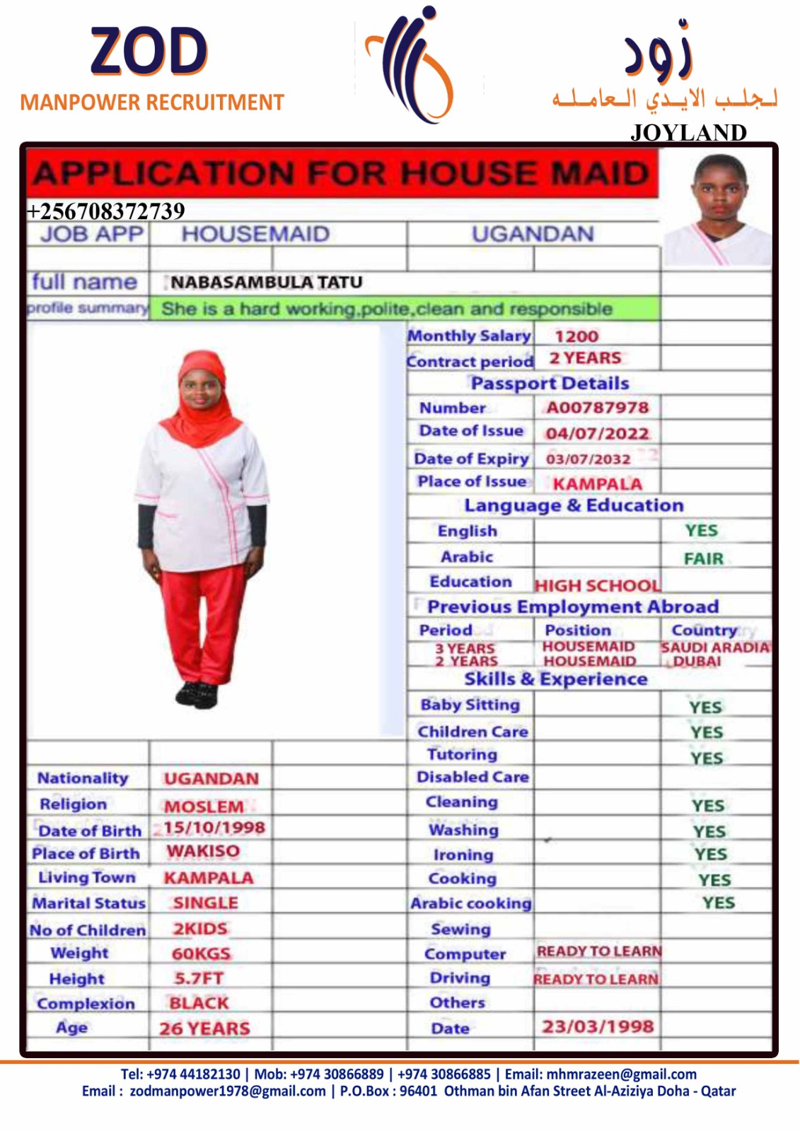 الاسم - عربي NABASAMBULA TATU
