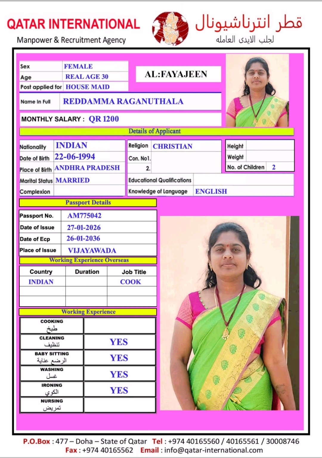 الاسم - عربي REDDAMMA RAGANUTALA
