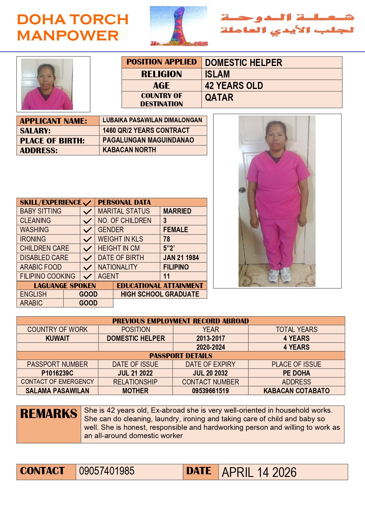 الاسم - عربي LUBAIKA DIMALONGAN