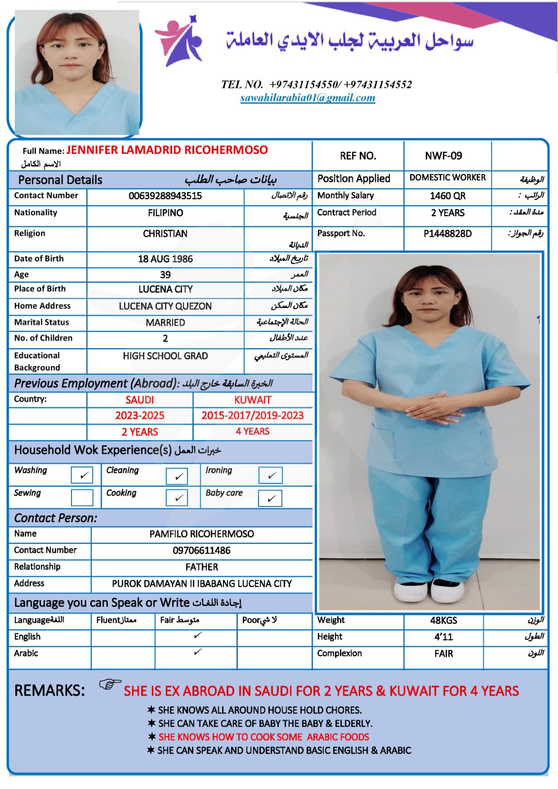 الاسم - عربي JENNIFER LAMADRID RICOHERMOSO