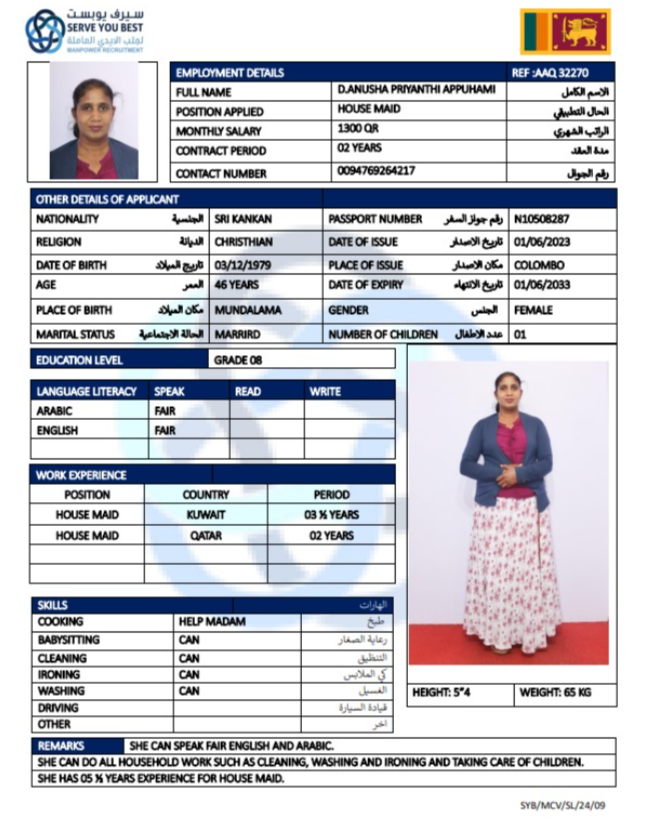 الاسم - عربي D. ANUSHA PRIYANTHI