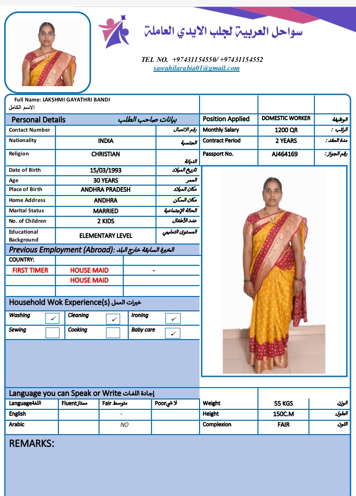 الاسم - عربي LAKSHMIGAYATHRI BANDI