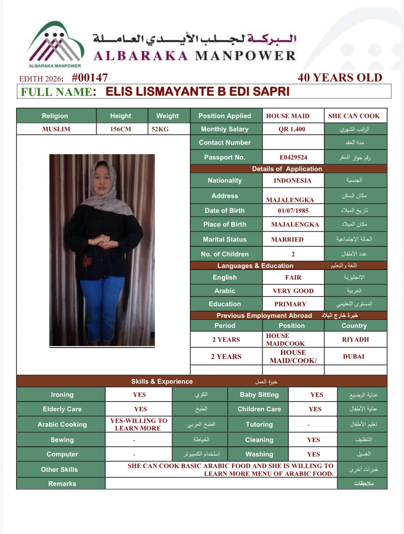 الاسم - عربي RLIS LISMAYANTE G