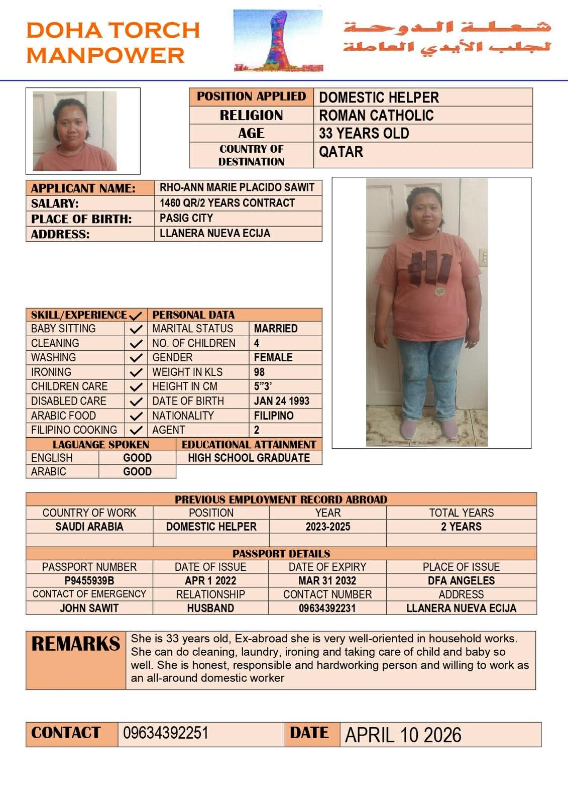 الاسم - عربي RHO-ANN MARIE SAWIT