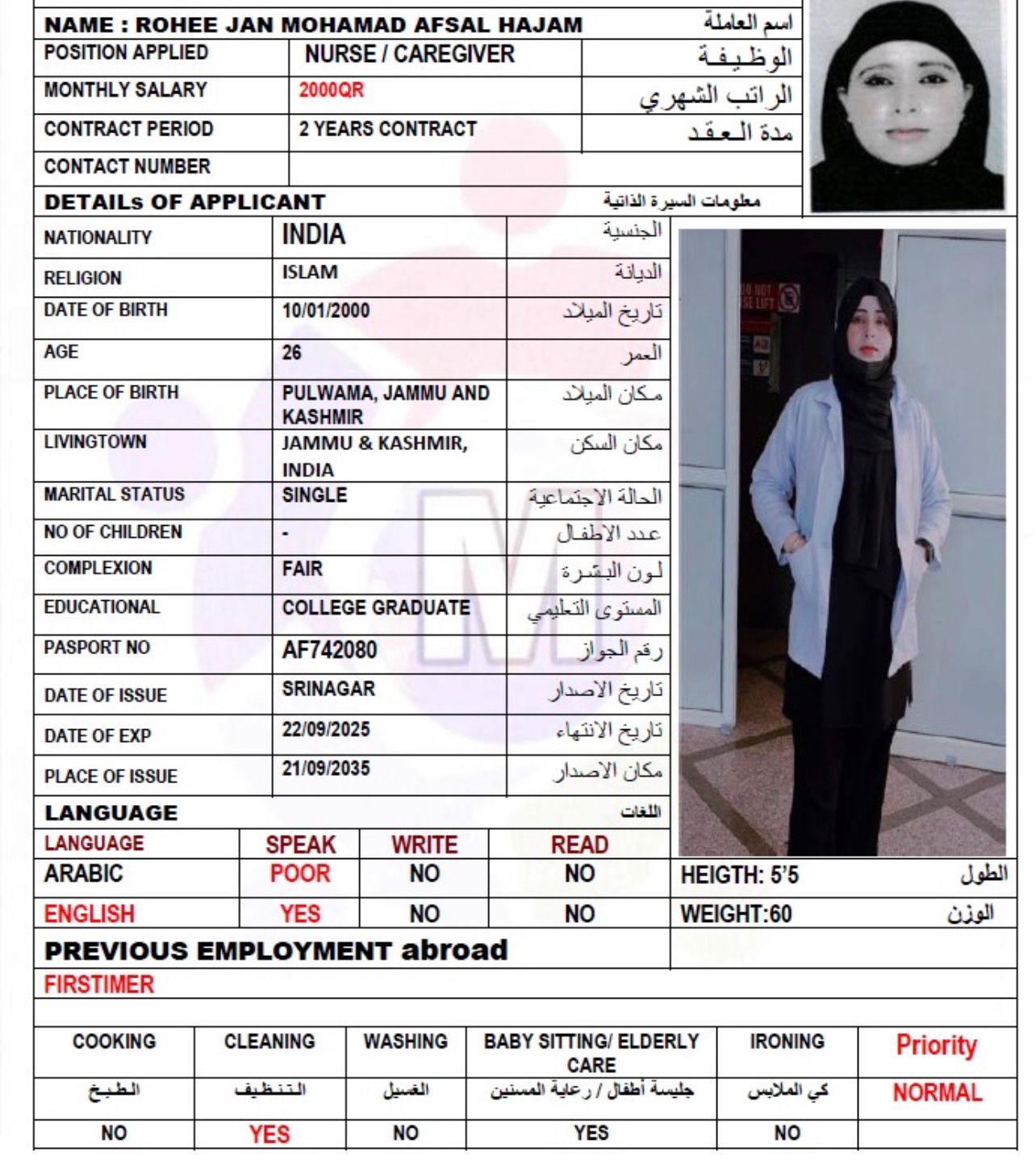 الاسم - عربي ROHEE JAN MOHAMAD AFSAL HAJAM