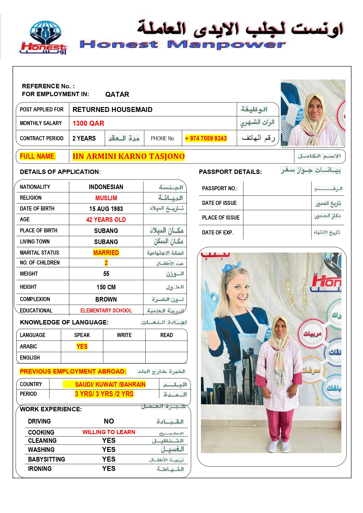الاسم - عربي IIN ARMINI BT KARNO