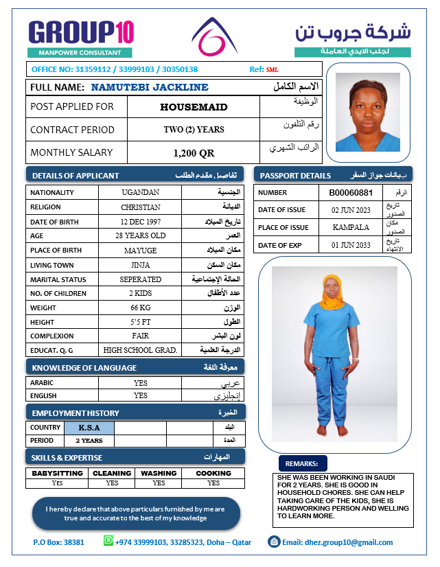 الاسم - عربي NAMUTEBI JACKLINE