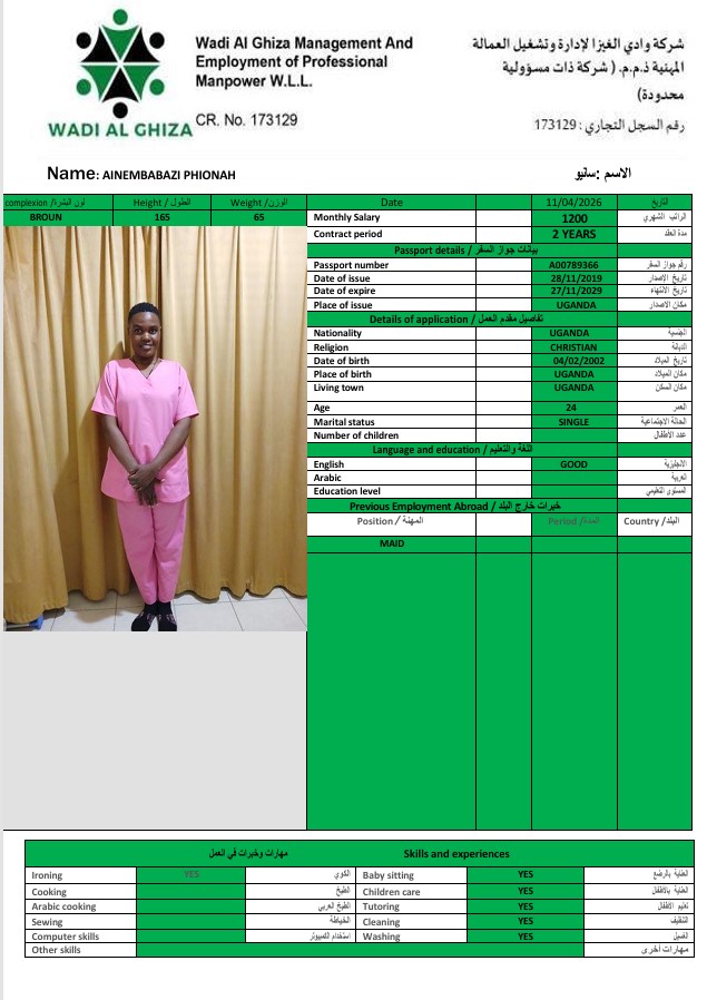 الاسم - عربي PHIONAH MBABAZI