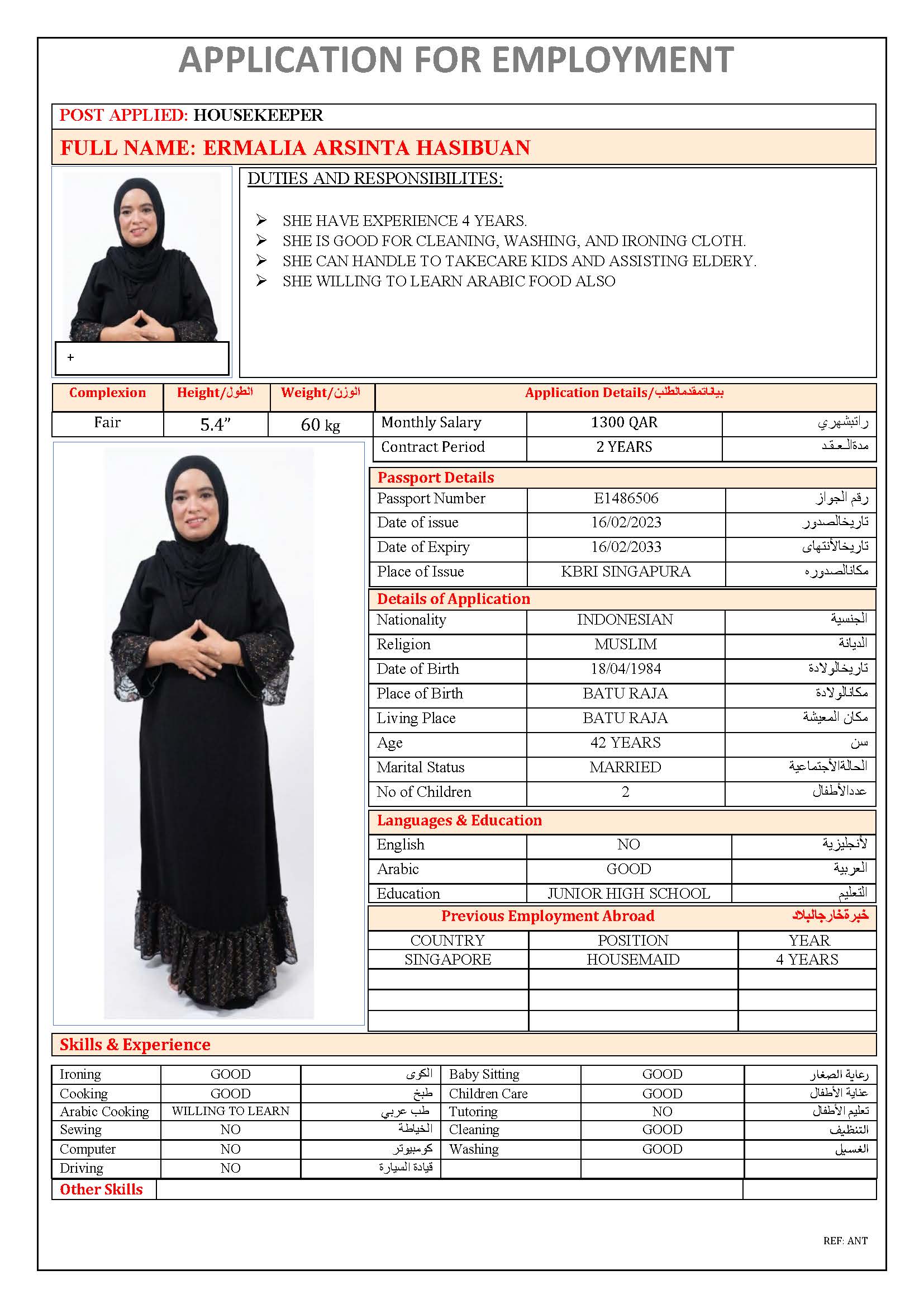 الاسم - عربي ERMALIA ARSINTA HASIBUAN
