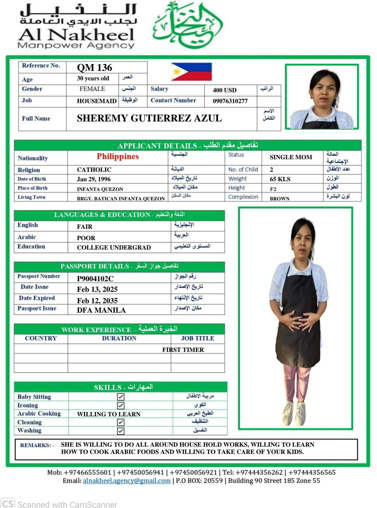 الاسم - عربي SHEREMY GUTIERREZ AZUL