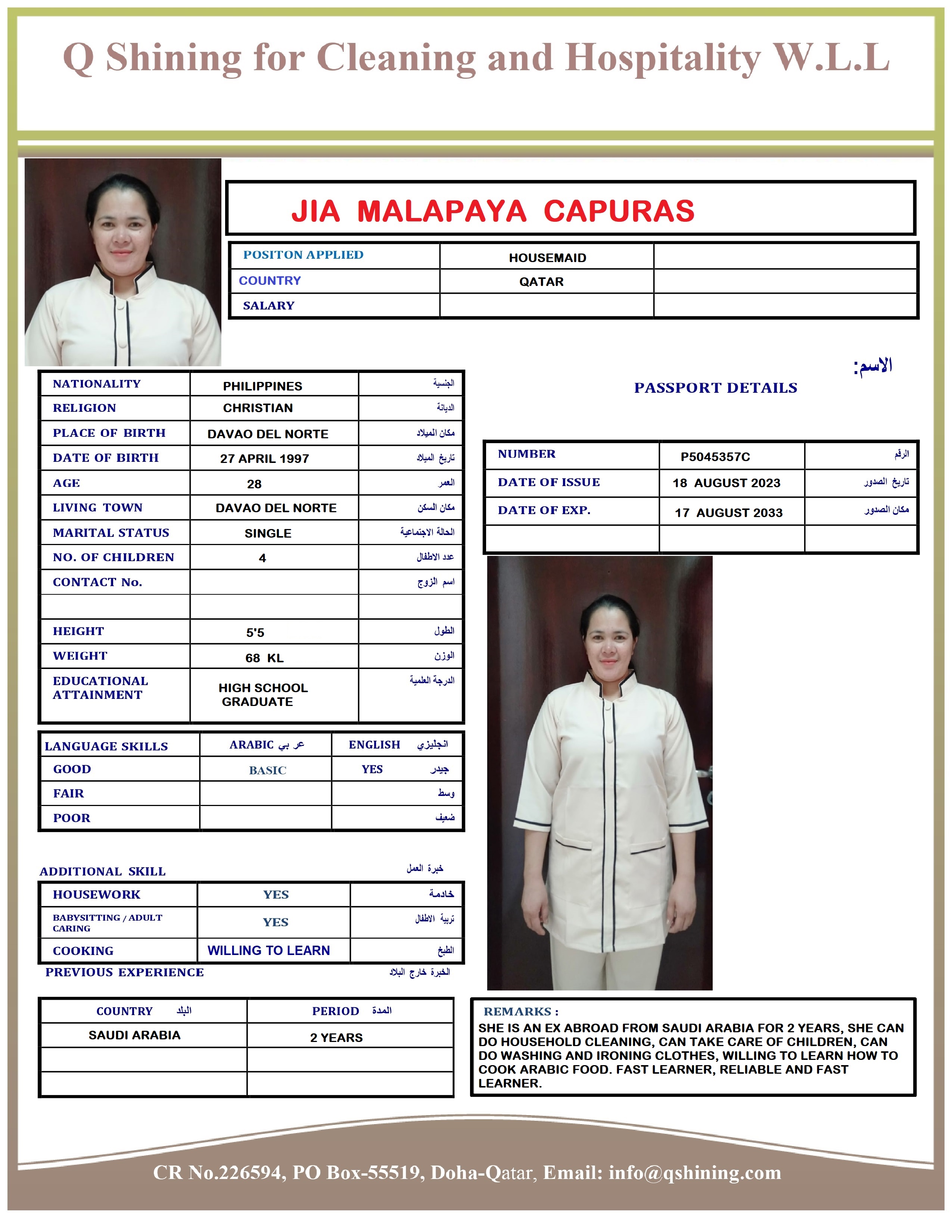 الاسم - عربي JIA MALAPAYA CAPURAS_