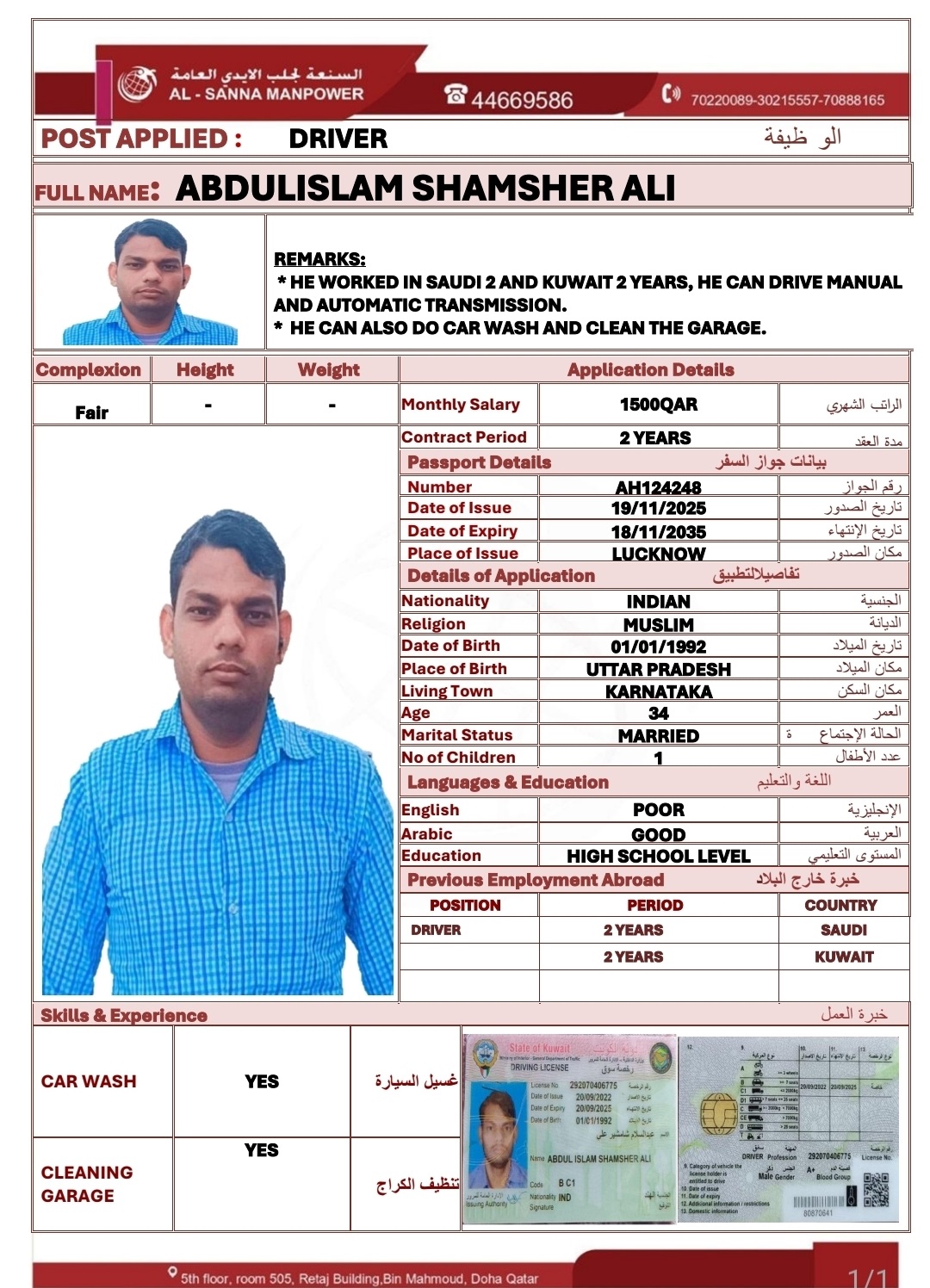 الاسم - عربي ABDULISLAM SHAMSHER ALI