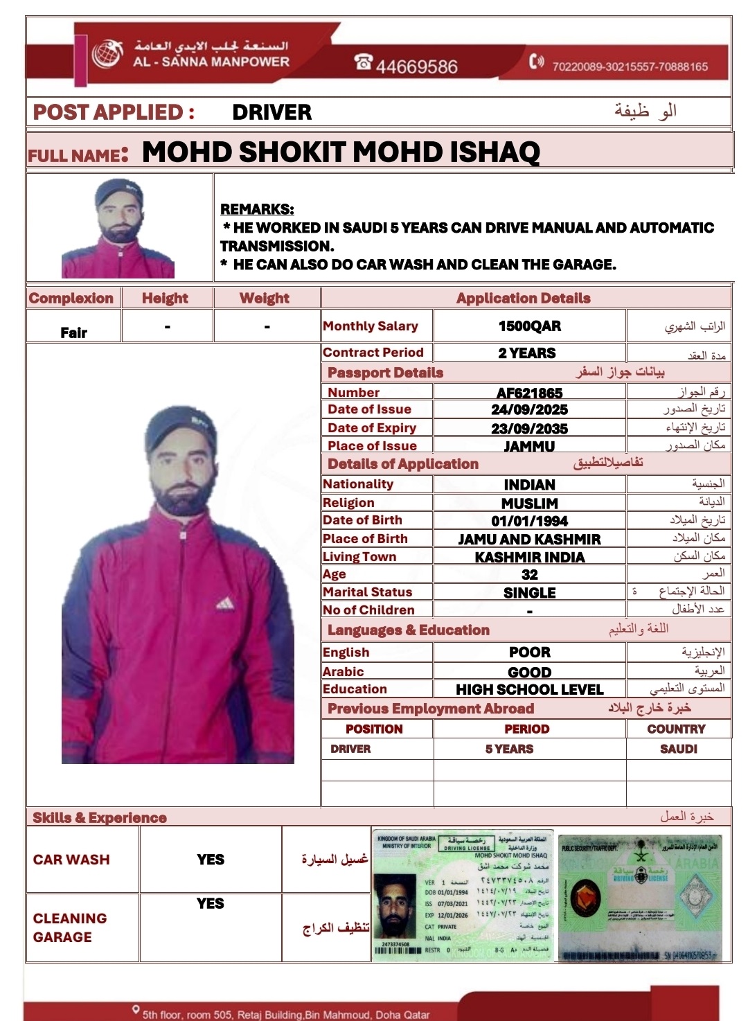 الاسم - عربي MOHD SHOKIT MOHD ISHAQ
