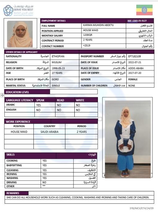 الاسم - عربي KARIMA MUHDIN ABDETU