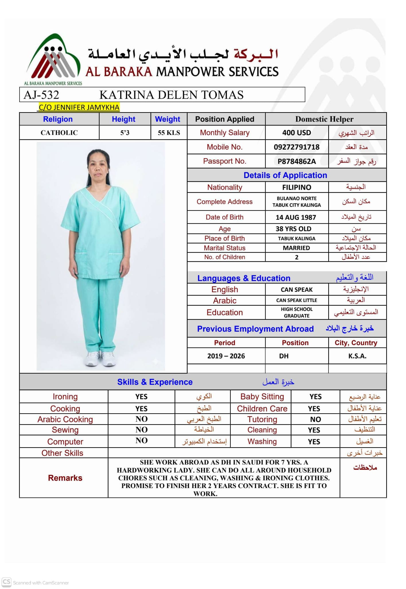 الاسم - عربي KATRINA DELEN TOMAS