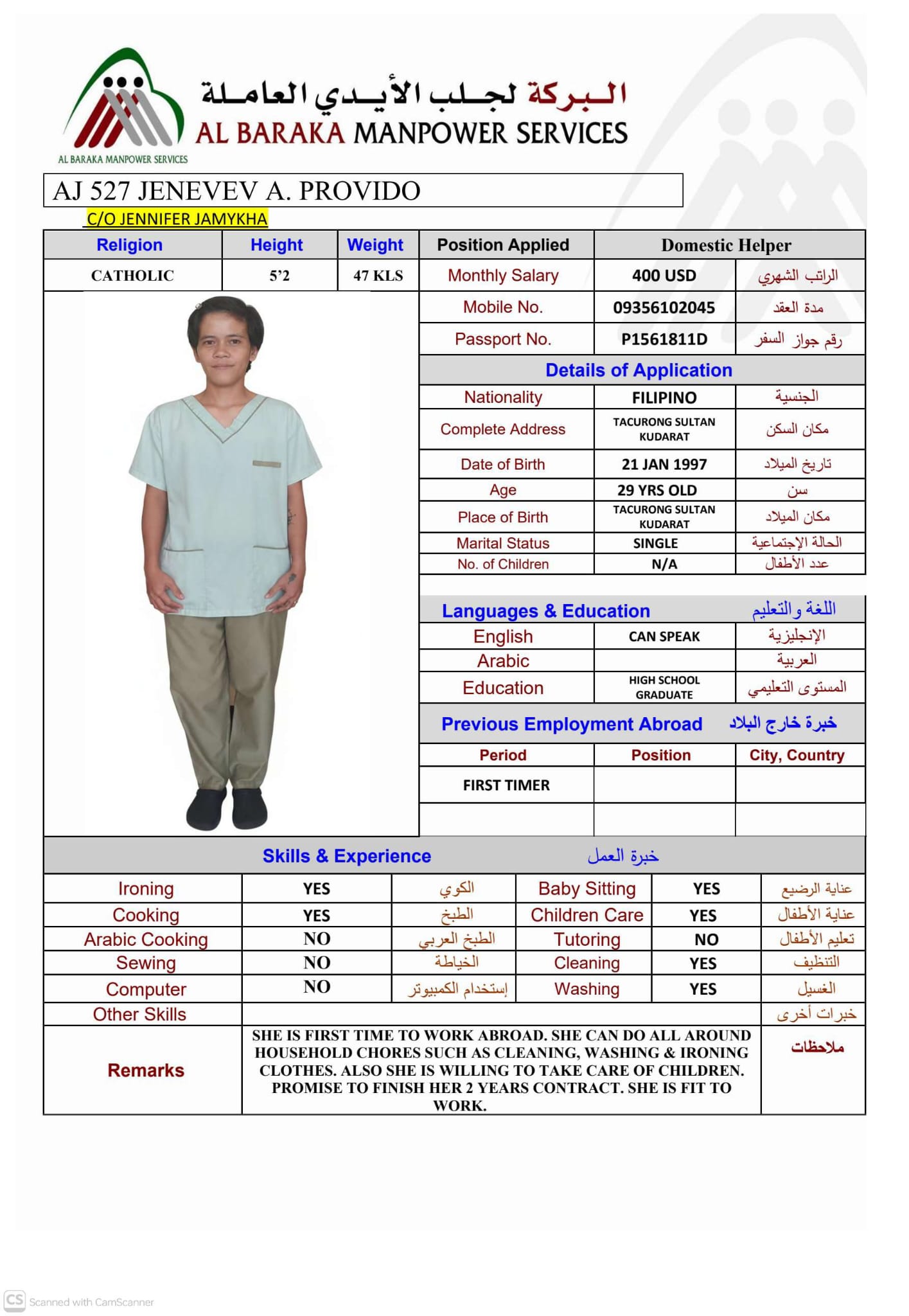 الاسم - عربي JENEVEV PROVIDO