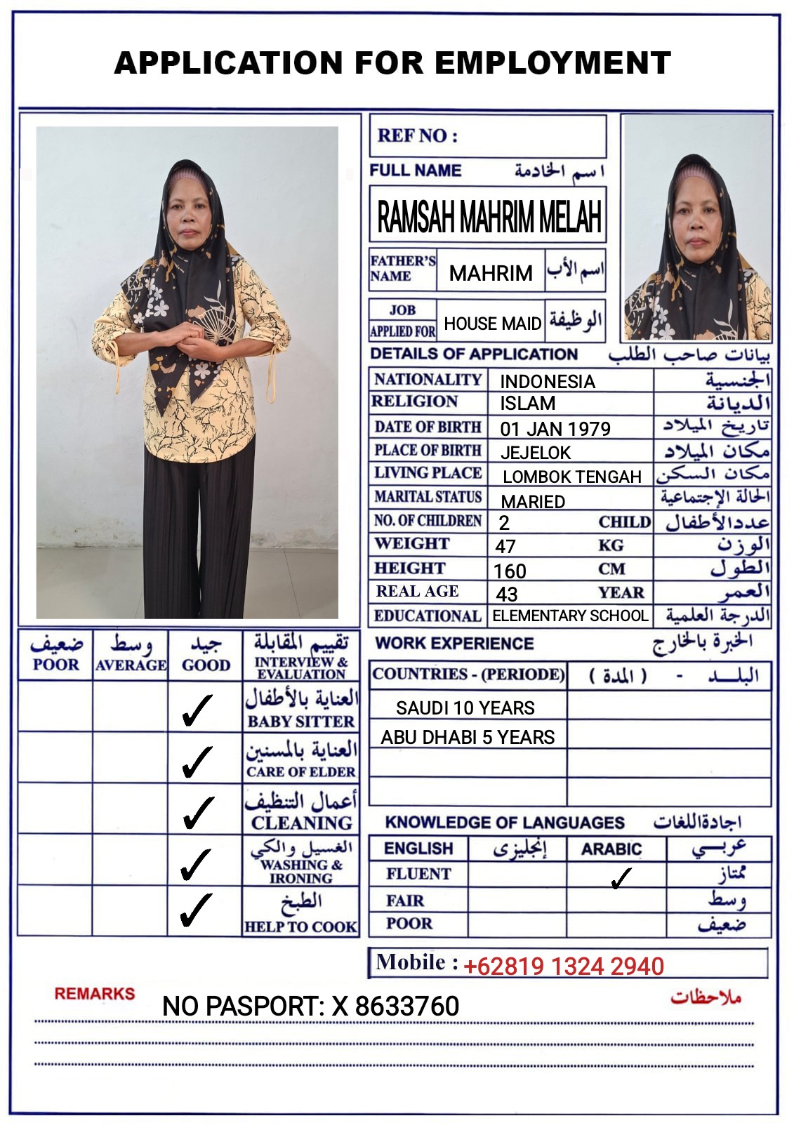 الاسم - عربي RAMSAH MAHRIM MELAH