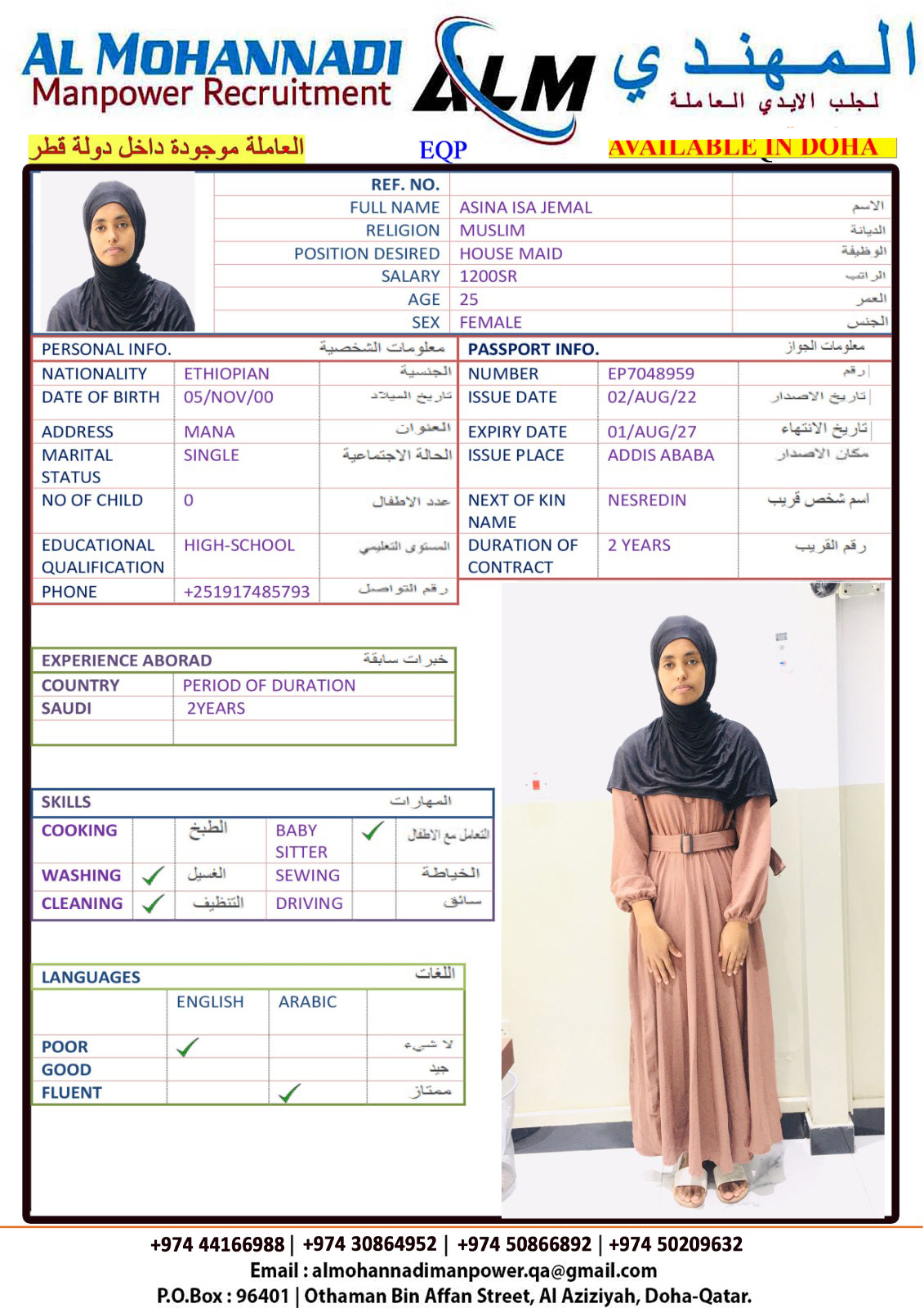 البريد الإلكتروني almohannadimanpower.qa@gmail.com