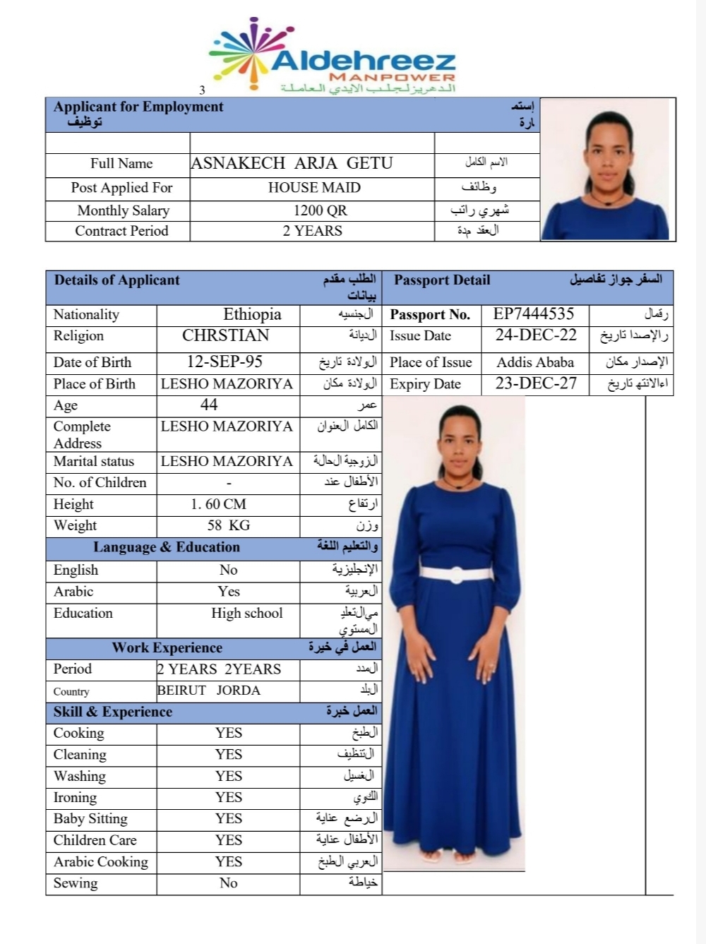الاسم - عربي ASNAKECH ARJA GETU