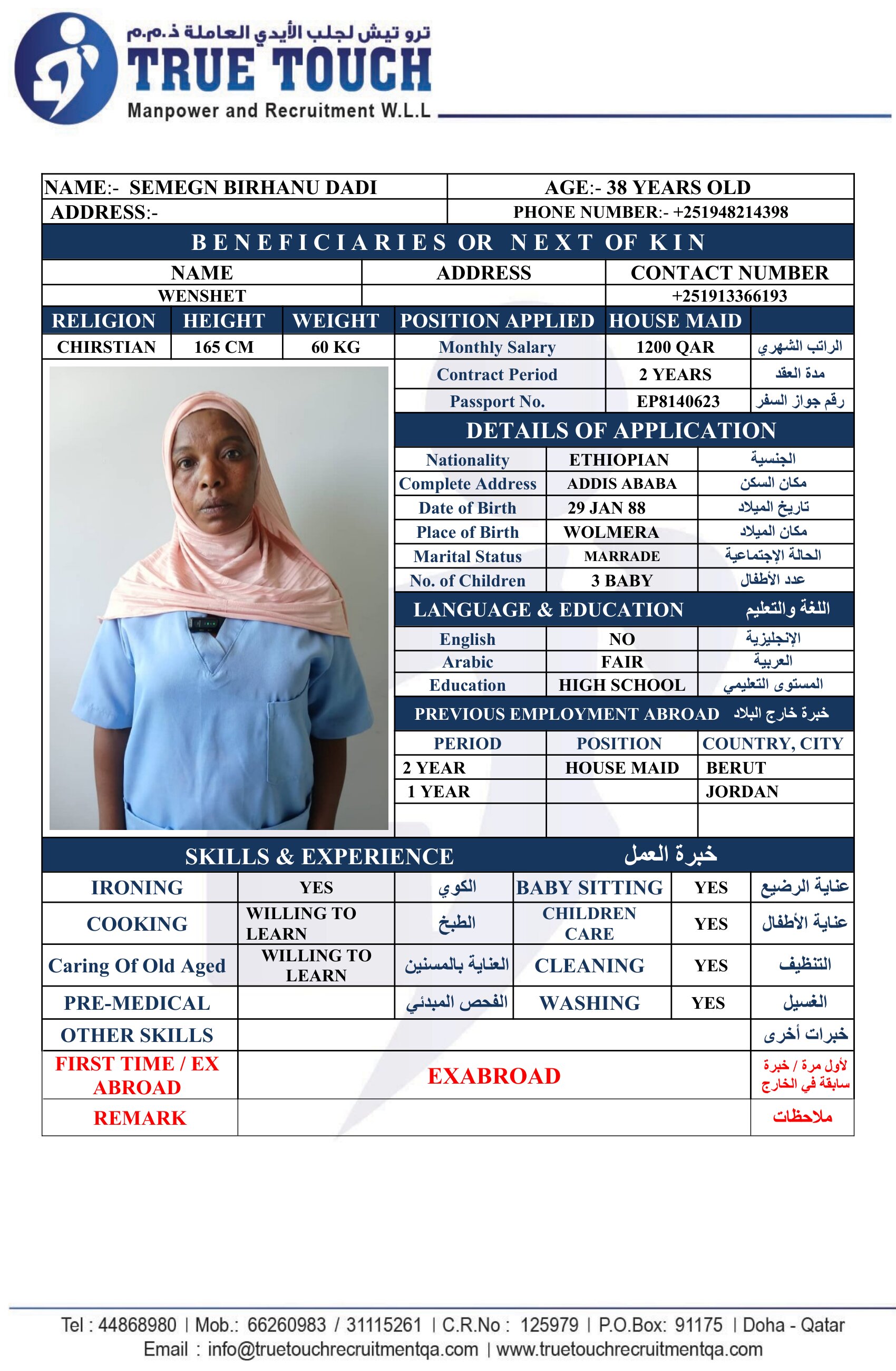 الاسم - عربي SEMEGN BIRHANU DADI