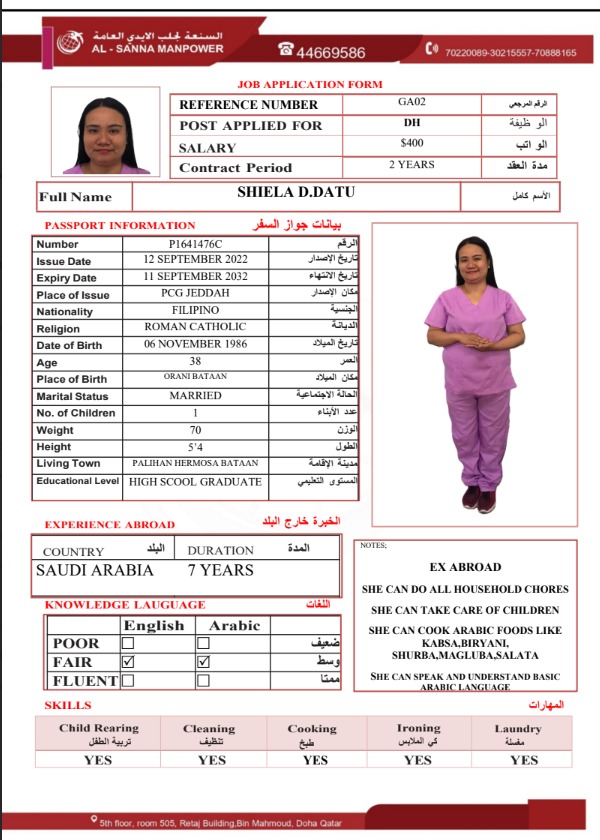 الاسم - عربي SHEILA DATU