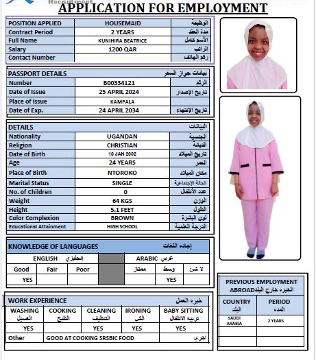 We have cvs housemaids, baby sitter ,lady driver, and others , with experience and first timer