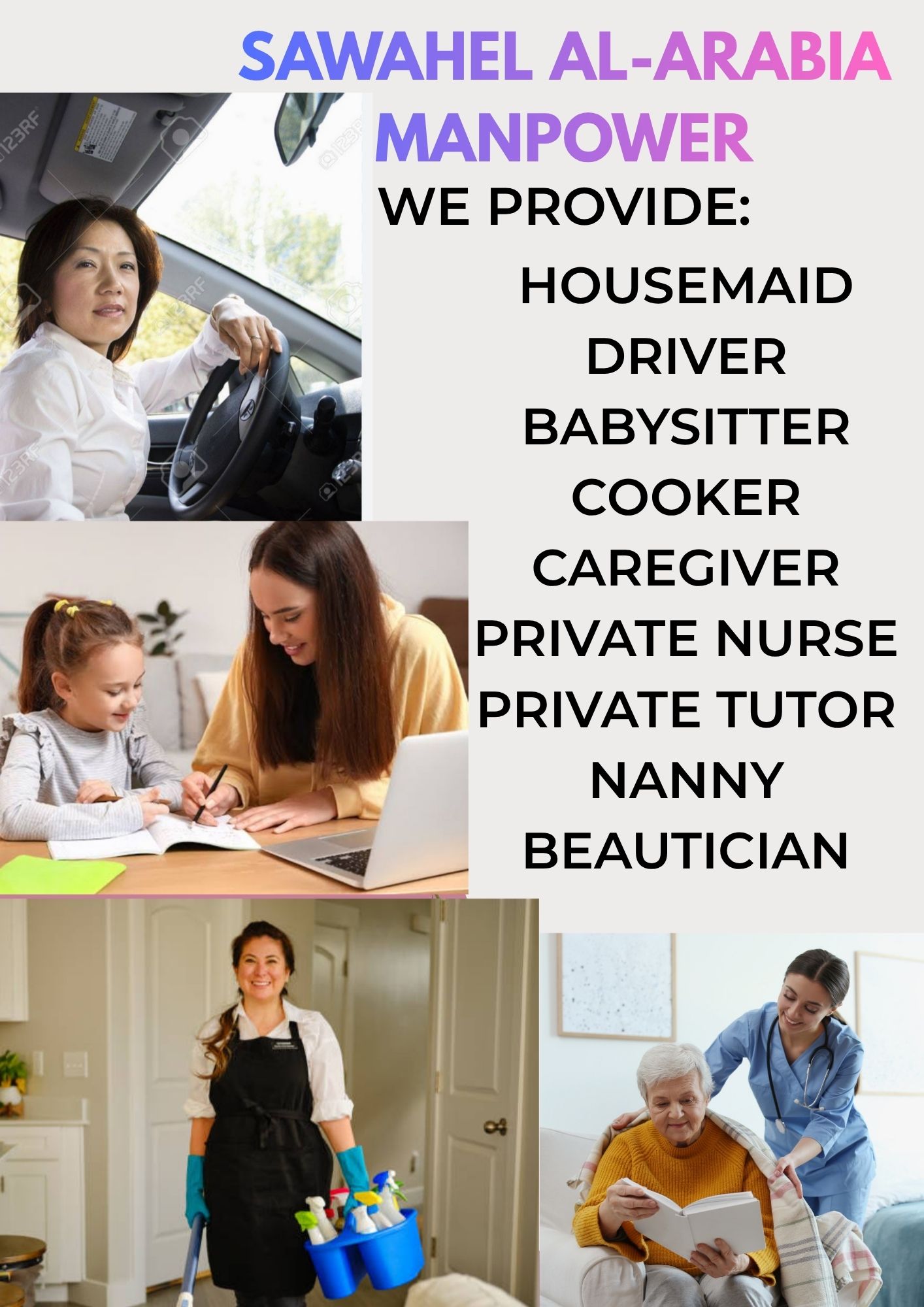 Welcome Are you looking for a driver, nurse, house manager, cleaner, nanny, secretary, professional workers for companies, security and guard personnel, foreman .... etc. Have you spent a long time looking for a maid? Have you made a great effort to find the right person? But to no avail ... Don't worry, we have the perfect solution to your problem Services…