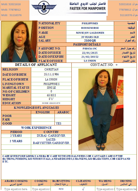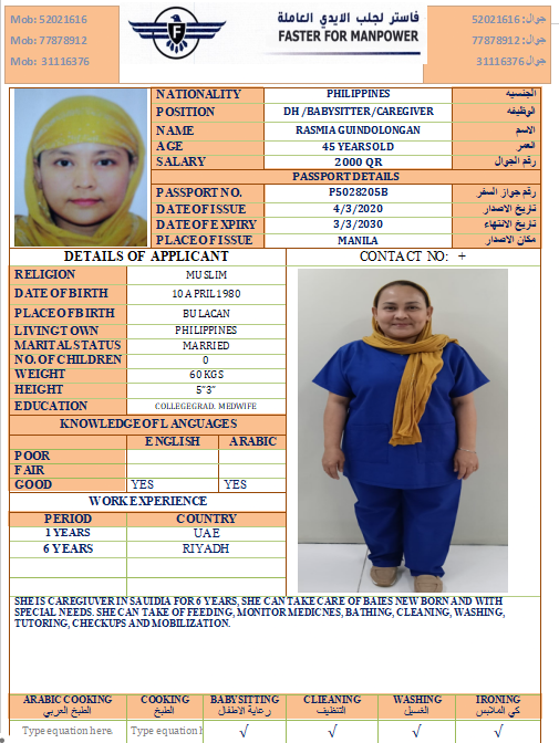 Welcome Are you looking for a driver, nurse, house manager, cleaner, nanny, secretary, professional workers for companies, security and guard personnel, foreman .... etc. Have you spent a long time looking for a maid? Have you made a great effort to find the right person? But to no avail ... Don't worry, we have the perfect solution to your problem Services…