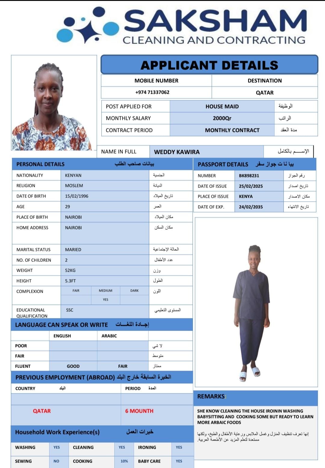 MARY KUMARI / AVAILABLE IN DOHA Domestic worker - India