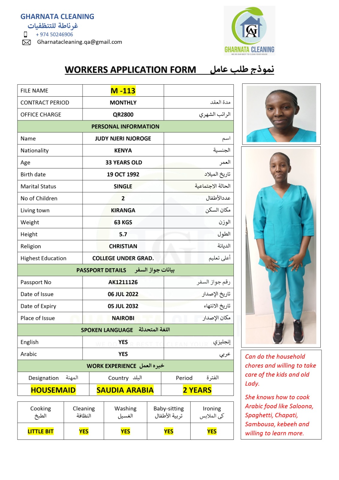 JUDY NJERY NJOROGE Domestic worker - Kenya