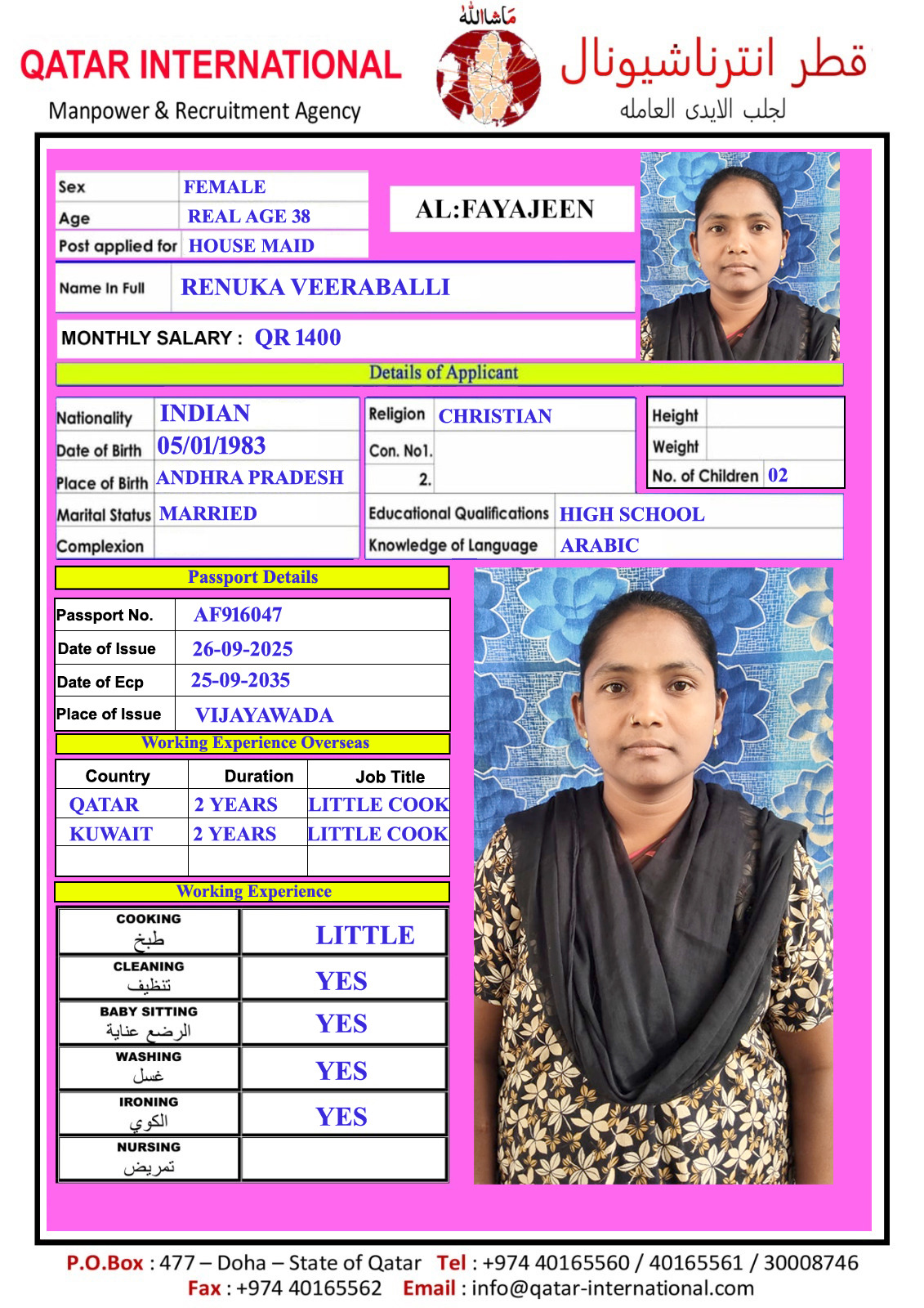 PALLIKONDA SANTHA KUMARI Domestic worker - India