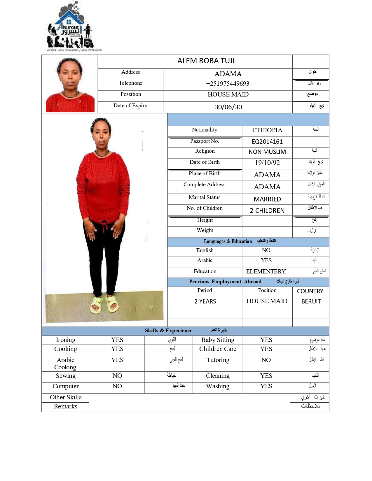 BETELEM MESERET GOMOA Domestic worker - Ethiopia