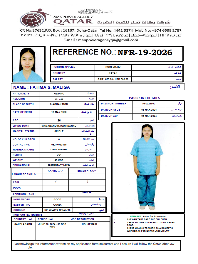 JUMATIYA LAKIM Domestic worker - Philippines