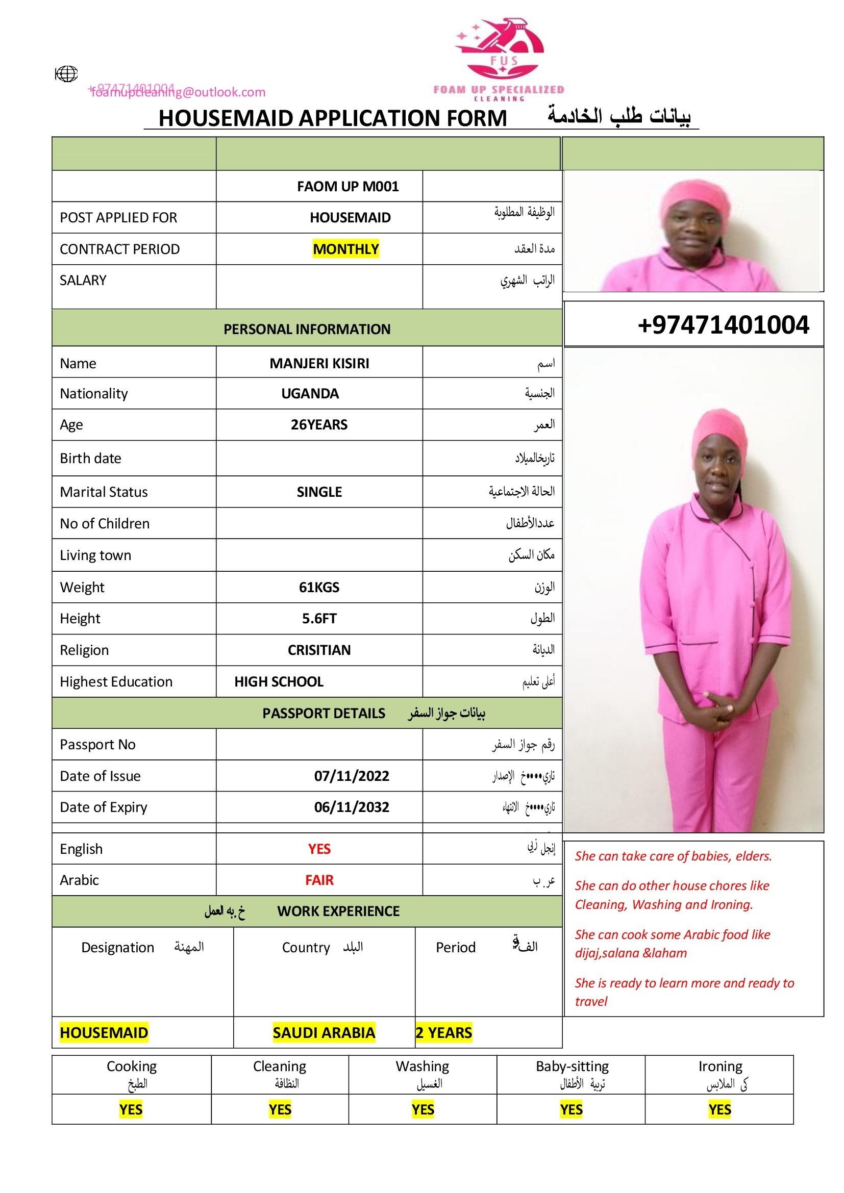 ELINAH . NATUKUNDE Domestic worker - Uganda