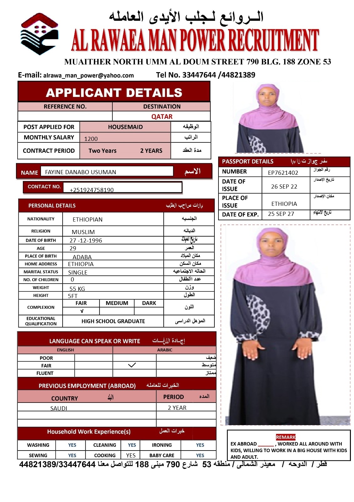 ZEBIBA HUSSEN SIED Domestic worker - Ethiopia